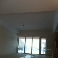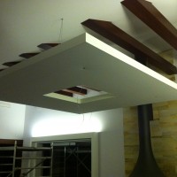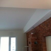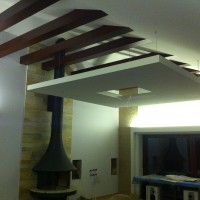 Buvo prašoma privačiame name sumontuoti „Clipso” audinio įtempiamas lubas. Vienoje patalpoje užsakovas pageidavo lubų dviejuose aukščiuose. „Clipso” montavimo technologija tai leidžia atlikti su minimaliais audinio jungimais, kurie neišsiskiria iš bendro lubų vaizdo. Antroje patalpoje teko apdirbti lubas, kuriose šlaitinė dalis jungiasi su plokščia ir kuriose sumontuotas medinės sijos, kurias reikėjo papildomai apdirbti, kad galėtume įtempti audinį. Antras iššūkis buvo papildomos pakabinamos lubos po sijomis. Joms sumontuoti mes panaudojme specialius „Clipso” profiliu, kurie jungiasi iš abiejų kraštų, taip užmaskuodami nepageidaujamas detales