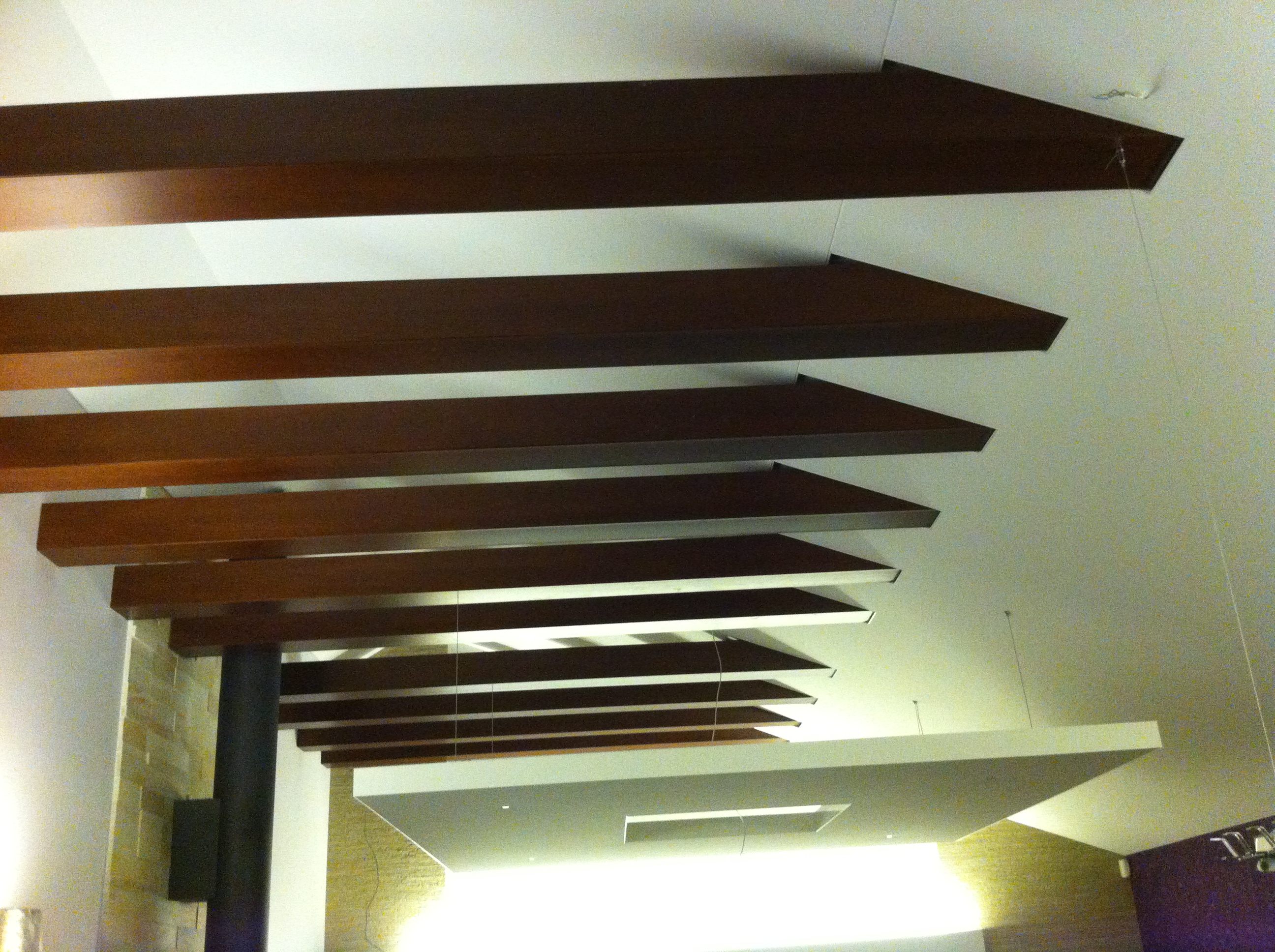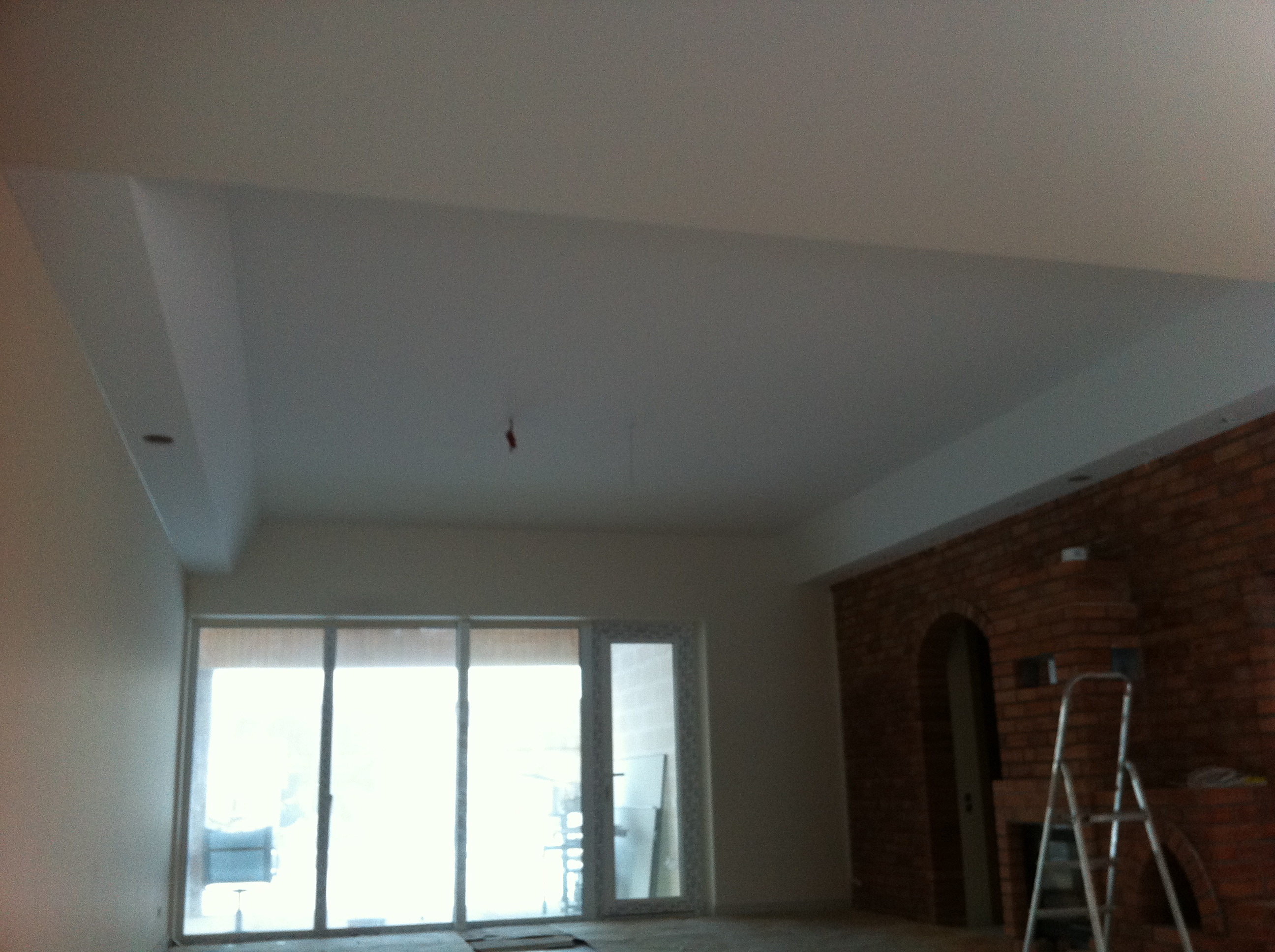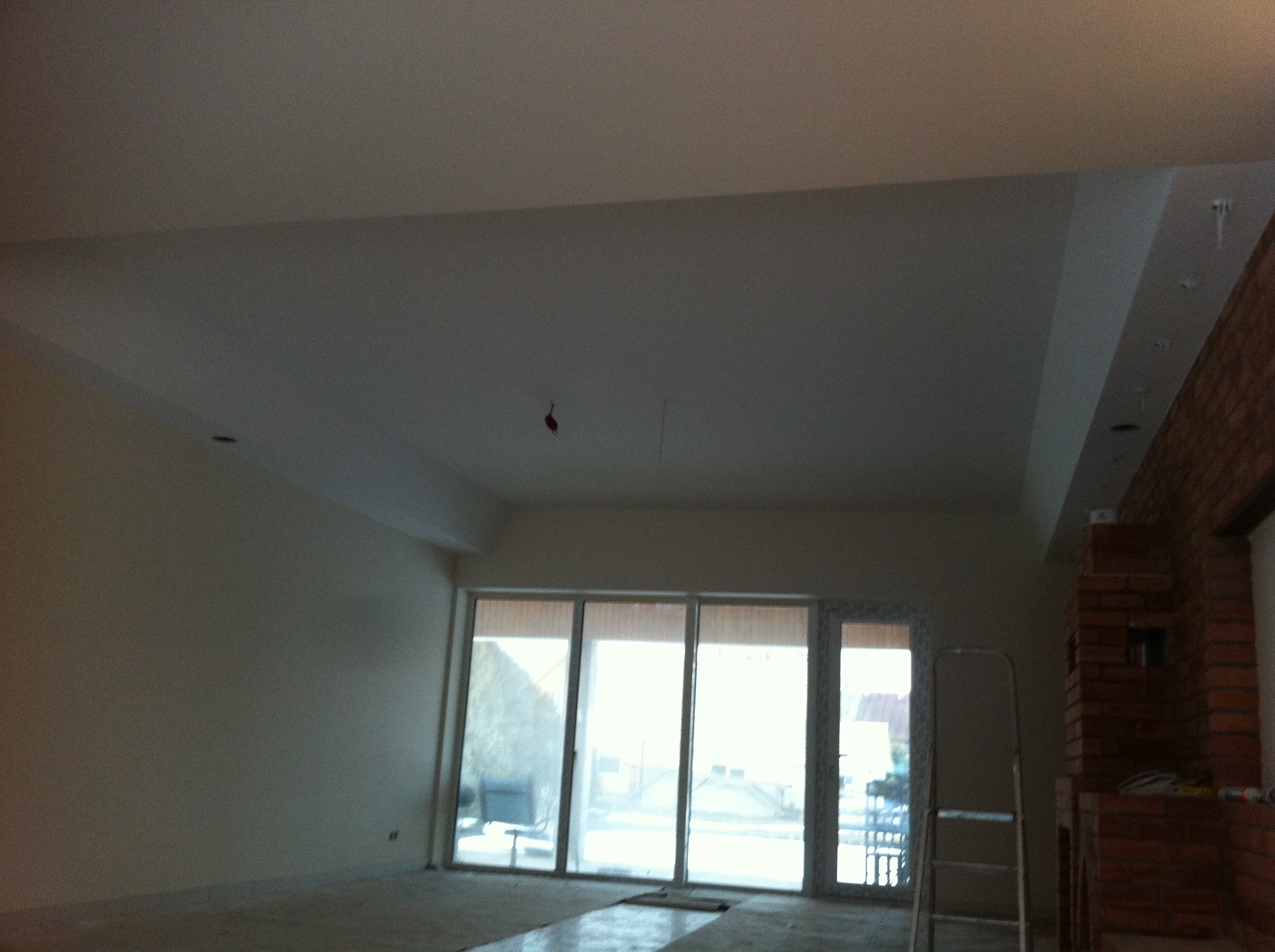 Buvo prašoma privačiame name sumontuoti „Clipso” audinio įtempiamas lubas. Vienoje patalpoje užsakovas pageidavo lubų dviejuose aukščiuose. „Clipso” montavimo technologija tai leidžia atlikti su minimaliais audinio jungimais, kurie neišsiskiria iš bendro lubų vaizdo. Antroje patalpoje teko apdirbti lubas, kuriose šlaitinė dalis jungiasi su plokščia ir kuriose sumontuotas medinės sijos, kurias reikėjo papildomai apdirbti, kad galėtume įtempti audinį. Antras iššūkis buvo papildomos pakabinamos lubos po sijomis. Joms sumontuoti mes panaudojme specialius „Clipso” profiliu, kurie jungiasi iš abiejų kraštų, taip užmaskuodami nepageidaujamas detales